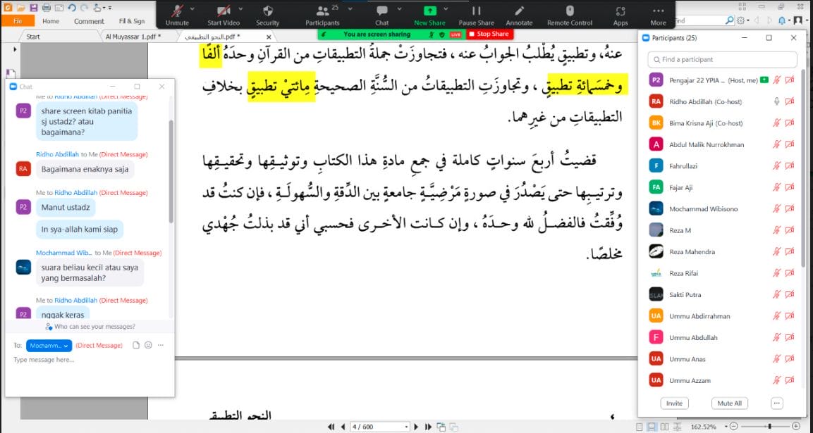 Dalam rangka menambah khazanah keilmuan para pengajar di Ma’had Umar bin Khattab, diadakan program kajian mulazamah Kitab Nahwu Bagi Pengajar Ma’had Umar bin Khattab. Harapan besar dengan adanya kajian ini adalah untuk menambah pengetahuan nahwu dan mengasah keilmuan para pengajar MUBK. Pada bulan Oktober ini, kajian dilaksanakan pada setiap Ahad Pekan ke-2 dan ke-4 secara  daring via Zoom