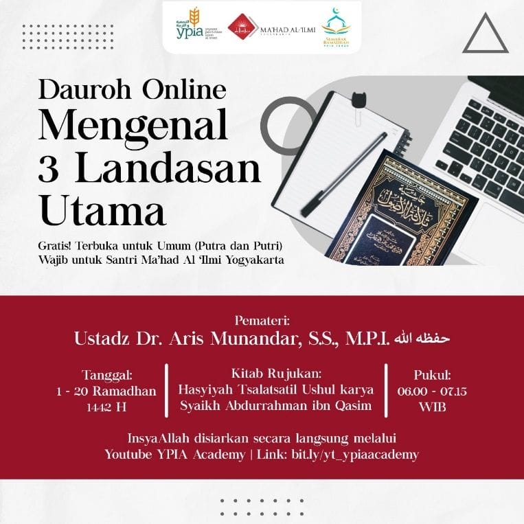 Pada kesempatan di pagi hari bulan Ramadan, YPIA mengadakan kegiatan Kajian Intensif Pagi. Merujuk pada Kitab “Hasiyah Tsalatsatil Ushul” yang ditulis oleh Syaikh Abdurrahman bin Qasim, oleh pemateri Ustaz Dr. Aris Munandar Hafizhahullah. Waktu pelaksanaan kajian ini pada 20 hari pertama Ramadhan 1442 H, 06.00 – 07.15 WIB, yang bertempat di Ponpes Hamalatul Qur’an. Peserta kajiannya Santri Ma’had Al Ilmi Yogyakarta dan Masyarakat Umum, Media yang ikut serta menyiarkan secara langsung dalam jaringan channel Youtube YPIA Academy dan HAQU.