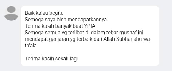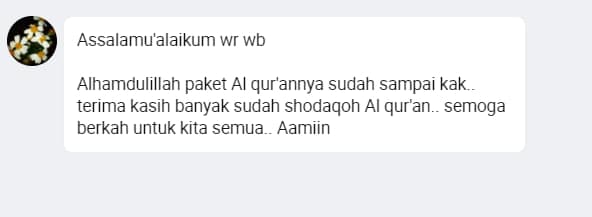 Berikut dokumentasi kegiatan pengiriman mushaf dan feedback Penerima Mushaf: