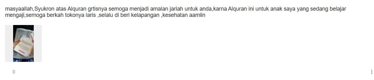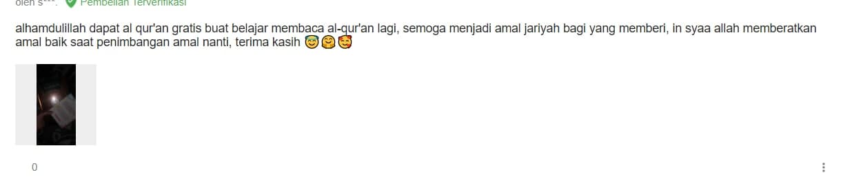 Semoga Para Pemesan yakni Kaum Muslimin mendapatkan manfaat keberkahan dari membaca, serta mentadaburi Mushaf Al Qur’an yang telah diterima.