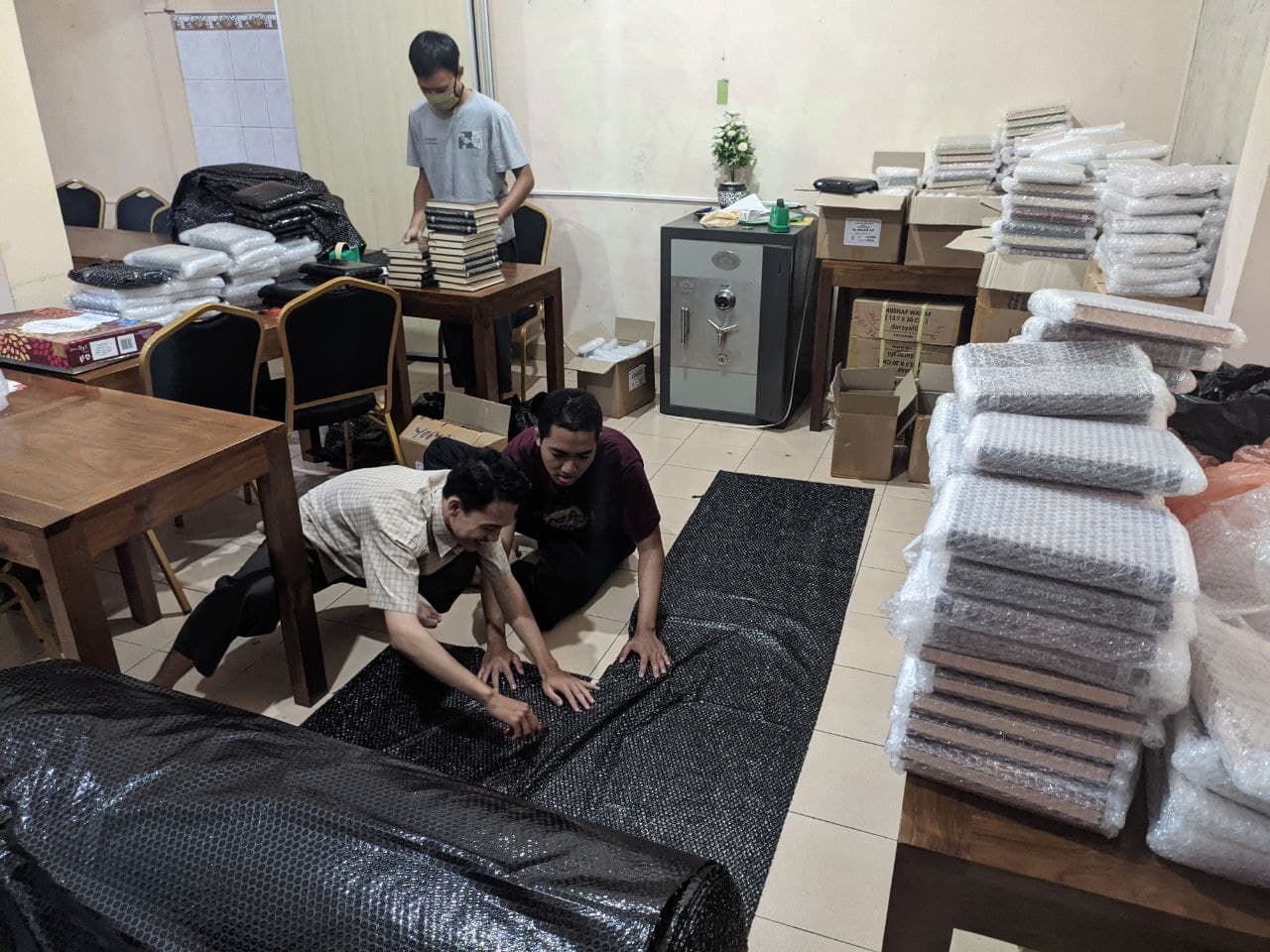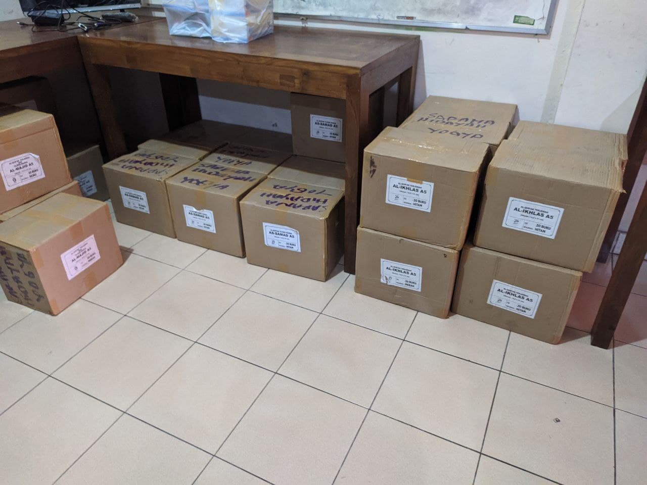 Saatnya untuk mengirim Mushaf kepada pemesan ke seluruh Indonesia. Pengiriman mushaf dari Kantor YPIA kabupaten Sleman DIY mulai dikerjakan hari rabu tanggal 7 April 2021. Panitia Semarak Ramadan YPIA mengusahakan mengirim Mushaf Al Qur’an berdasarkan jenis Mushaf sesuai pemesanan. Alhamdulillah pengerjaan packing Mushaf siang dan malam, dalam waktu kurang dari sepekan Mushaf telah dikirim semua kepada pemesan.