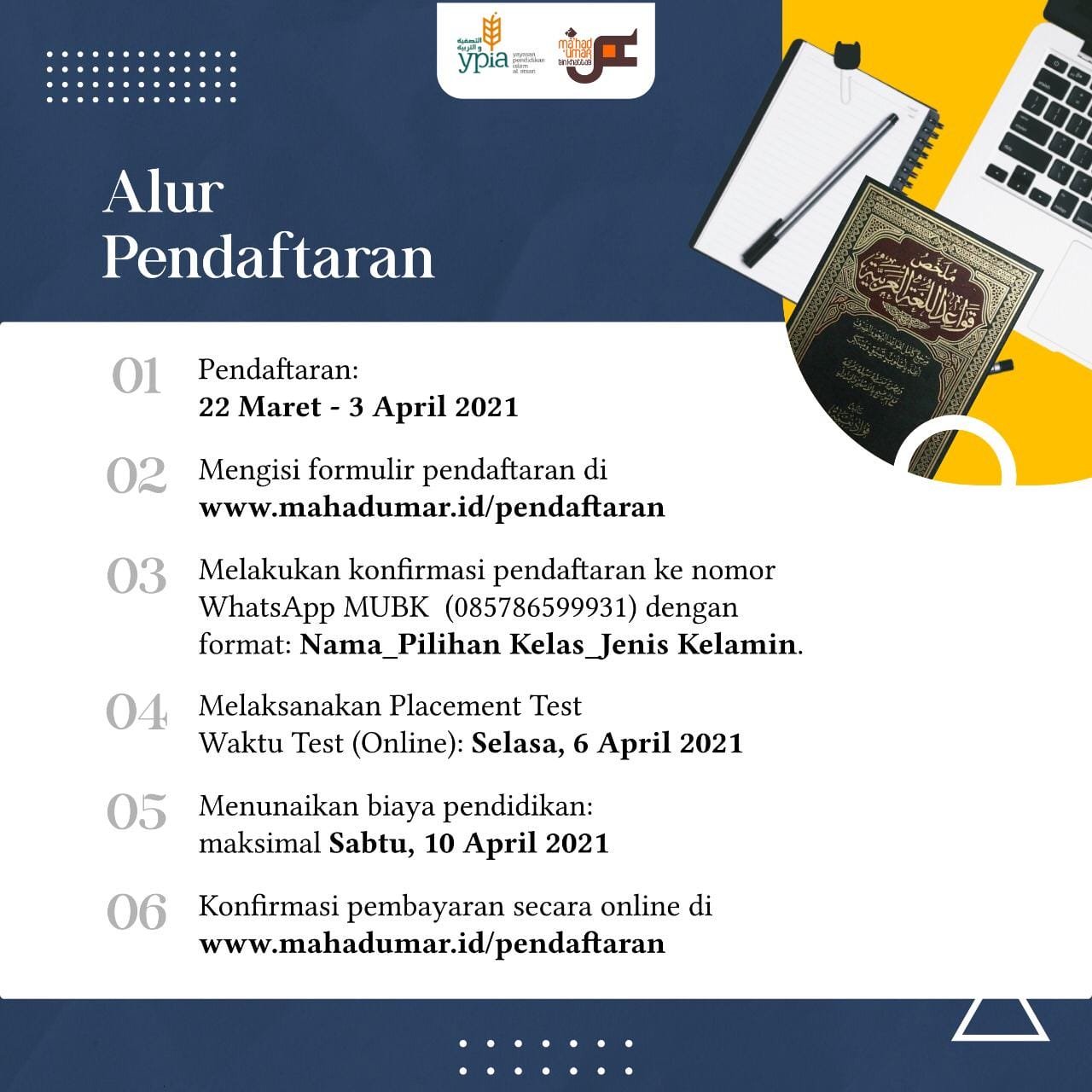 (2) Mengisi formulir pendaftaran di www.mahadumar.id/pendaftaran