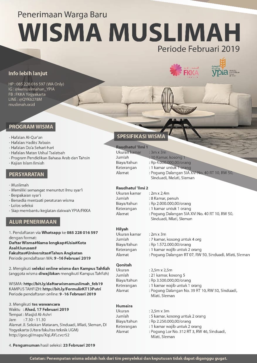 Penerimaan Warga Baru Wisma Muslimah Periode Februari 2019 Baca selengkapnya »