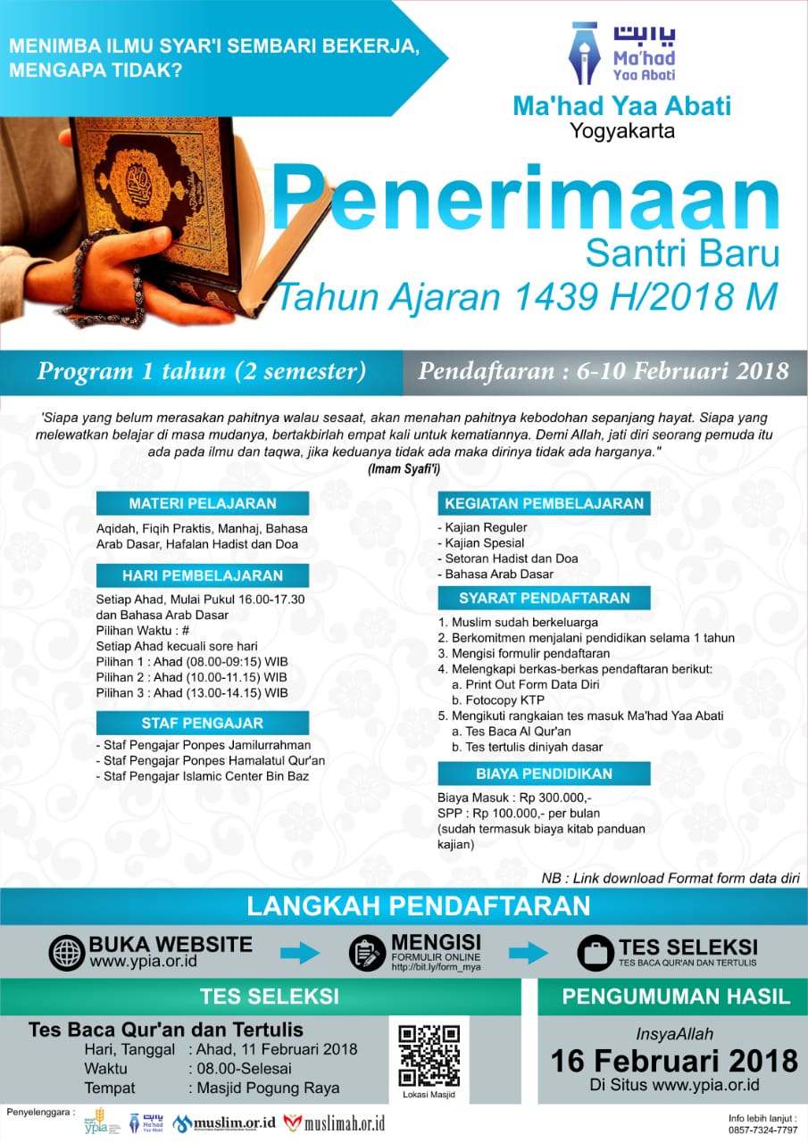 Pendaftaran Santri Baru Ma’had Yaa Abati Yogyakarta Baca selengkapnya »